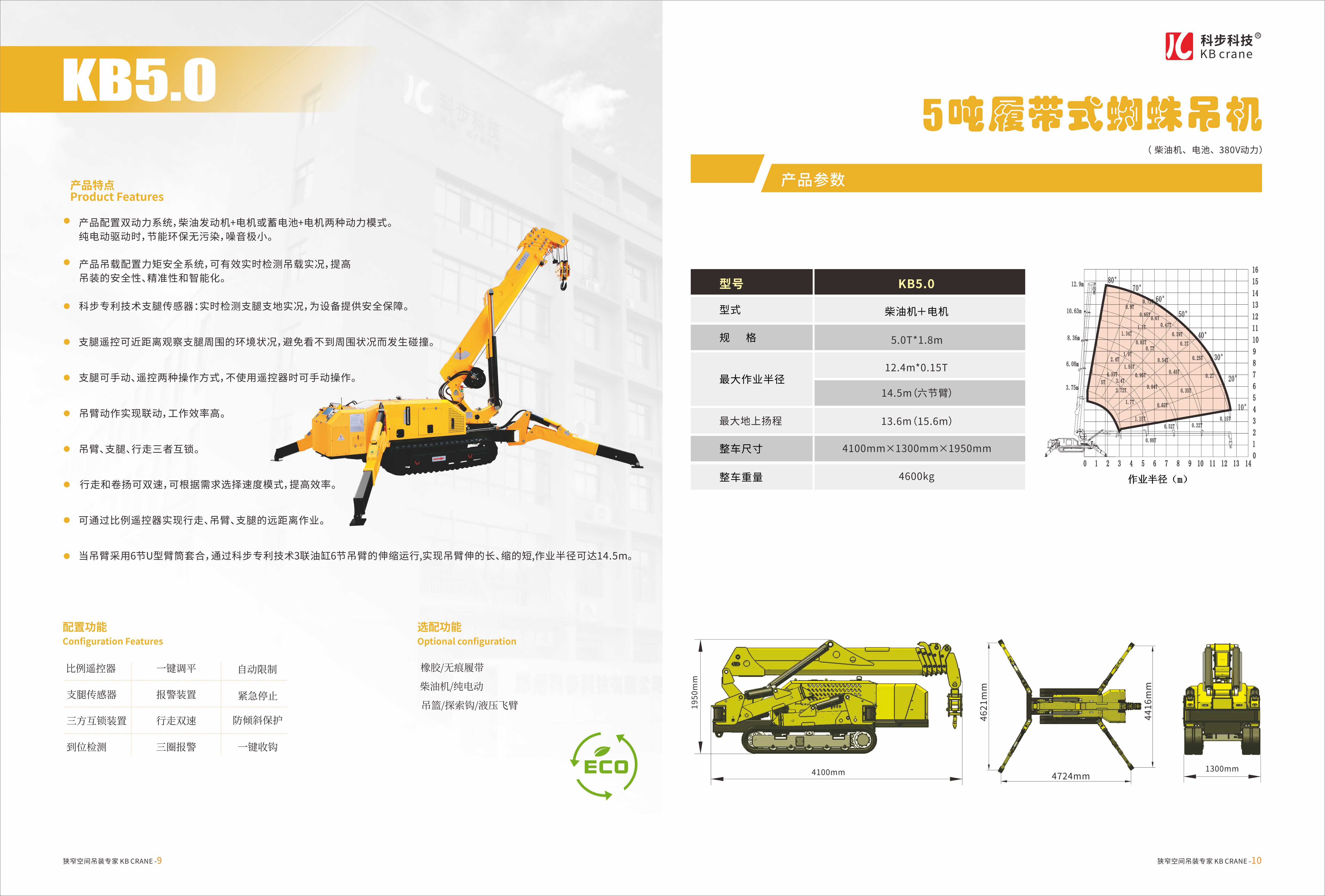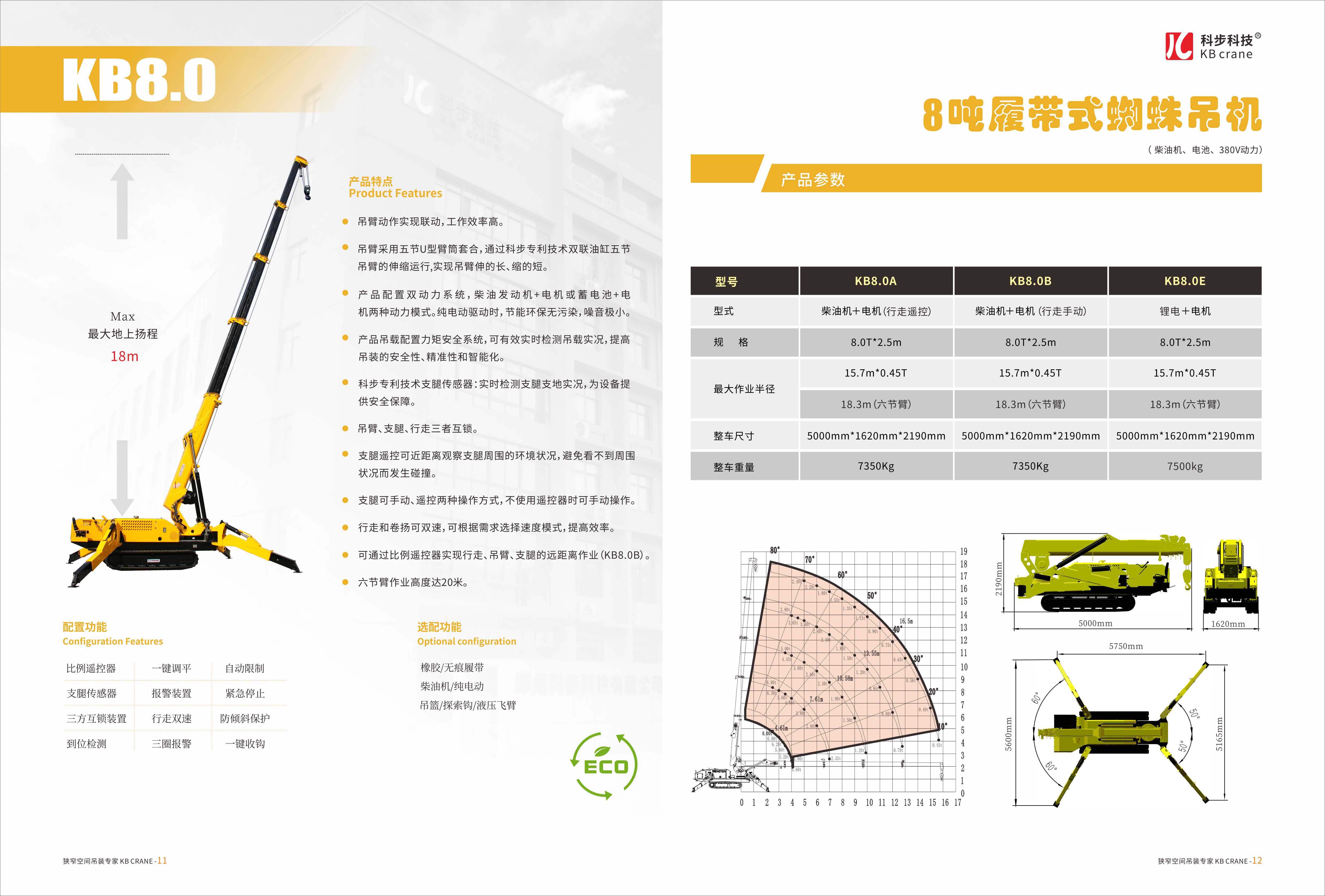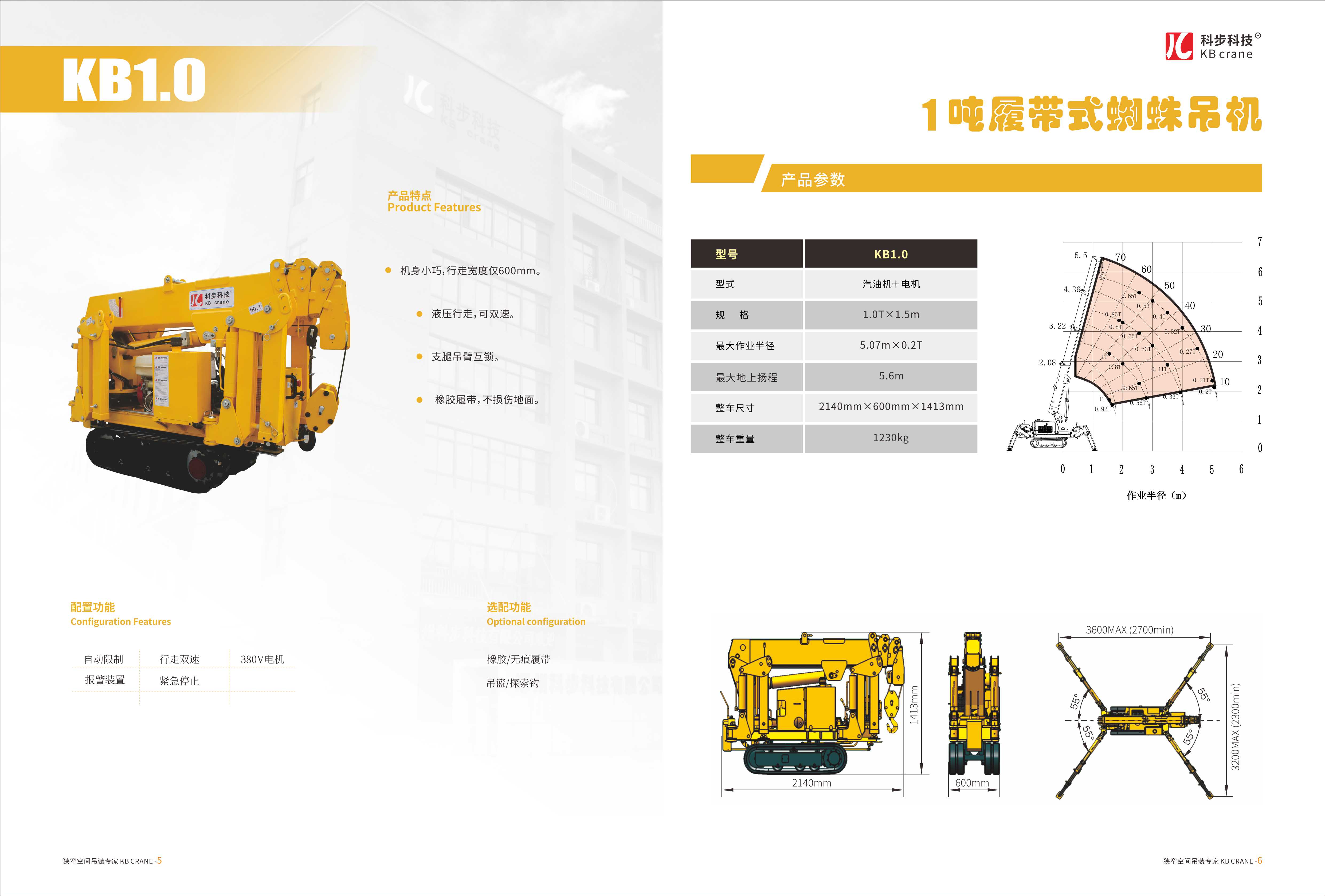 科步公司依托國外先進技術以及與鄭州市微型履帶起重機研究中心的合作,成功研發并生產了KB系列微型蜘蛛式履帶起重機包含KB1.0、KB3.0、KB5.0、KB8.0四款產品。