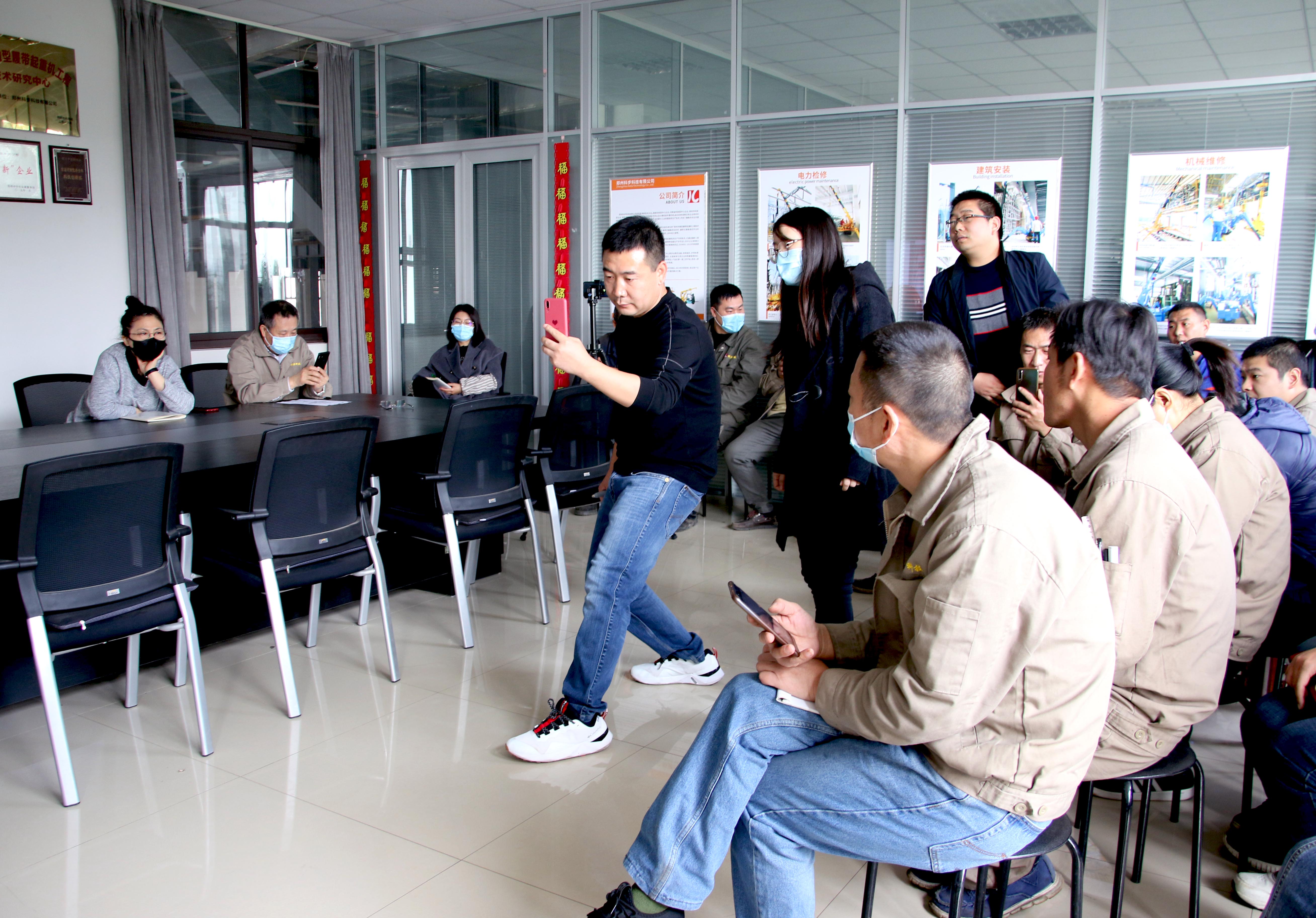 會議室培訓(xùn)后,孫老師又帶著我們到車間實地教學(xué),現(xiàn)場演練攝影技巧。大家紛紛效仿,按照老師的指導(dǎo)進行拍攝練習(xí)。現(xiàn)場氣氛非常活躍。
