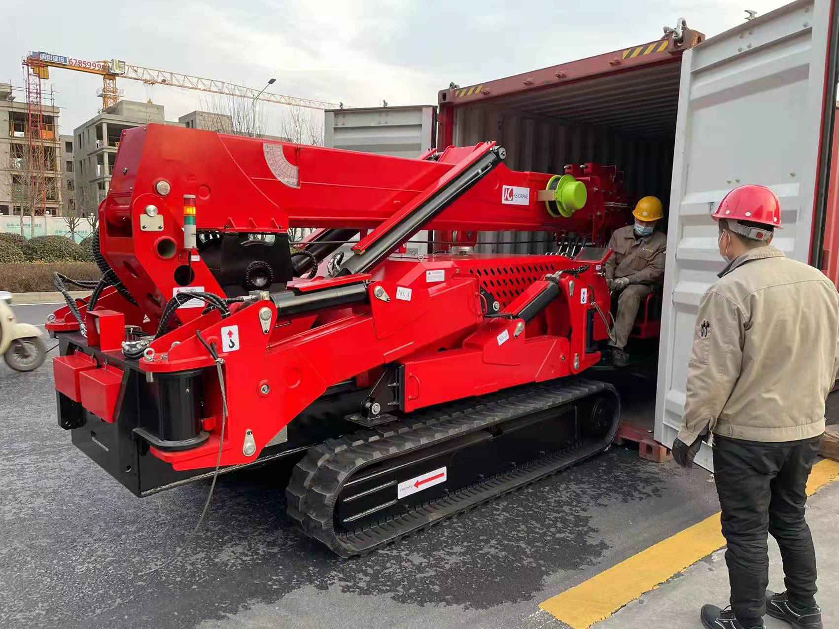 在寒冷的冬日,在疫情的圍剿下,科步公司突破重重困難,將客戶定做的蜘蛛吊車裝車發往港口。此次發貨訂單包含KB3.0,KB5.0,KB8.0在內的多臺蜘蛛吊,整車采用定制法拉利紅色漆面,輔以科步蜘蛛式車型,車體美觀,使人眼前一亮。